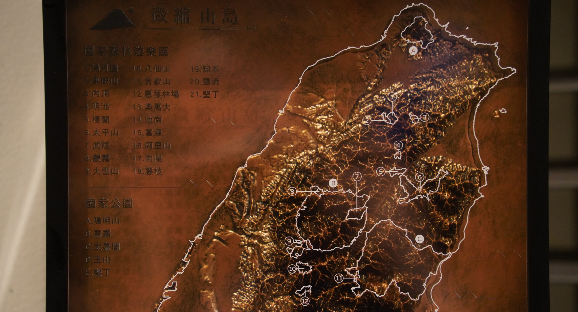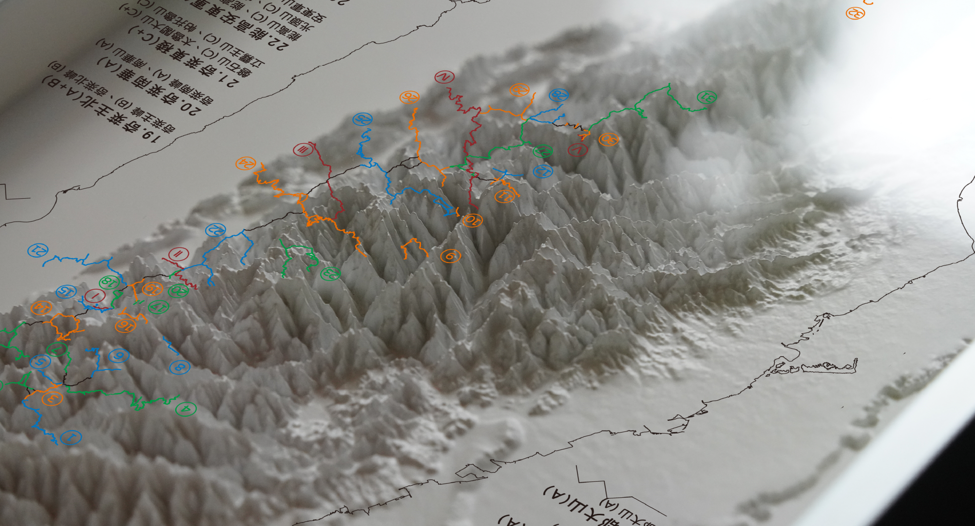 模型不只是模型,透過資訊圖卡交疊搭配,觀察山與河的分布與人為活動的足跡,帶我們深入思考自然與人類文明的關係。