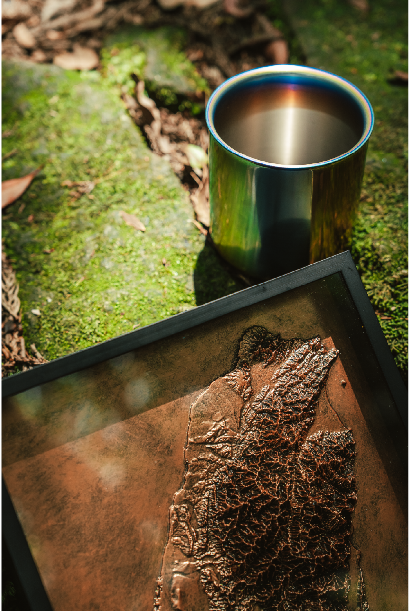 這款完全為登山設計的杯款,在各種休憩飽腹的時候都是好幫手,在火光或曙光映照之下又會反射出繁複的色彩變化